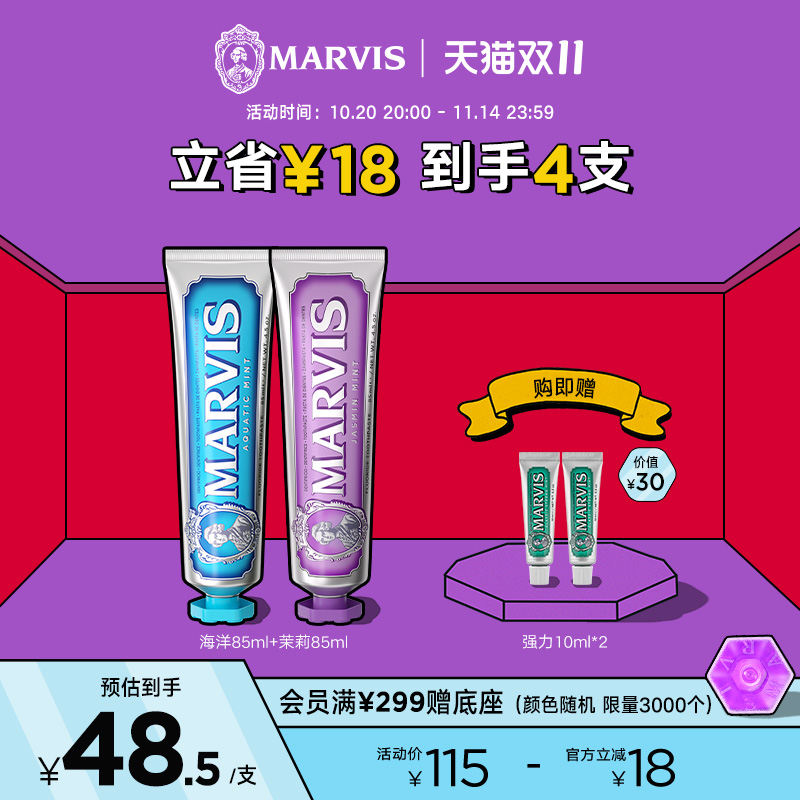 Marvis玛尔仕茉莉海洋牙膏套装85ml*2清新口气口腔清洁牙龈护理