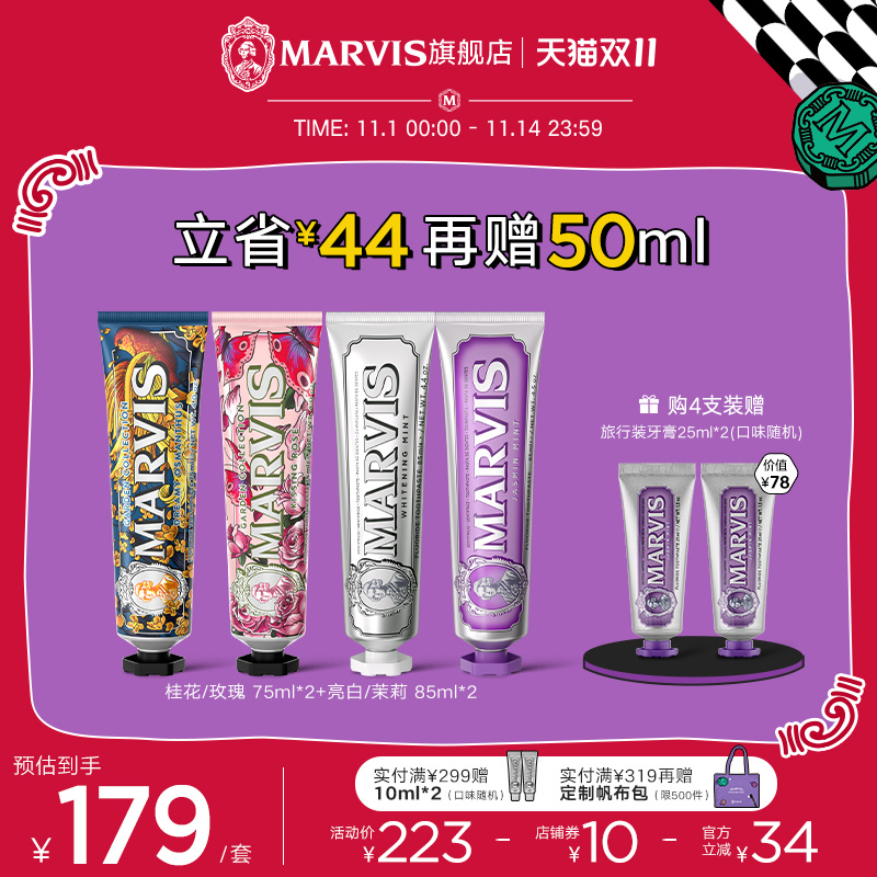 Marvis玛尔仕意大利进口薄荷牙膏套装亮白护龈清新口气持久留香