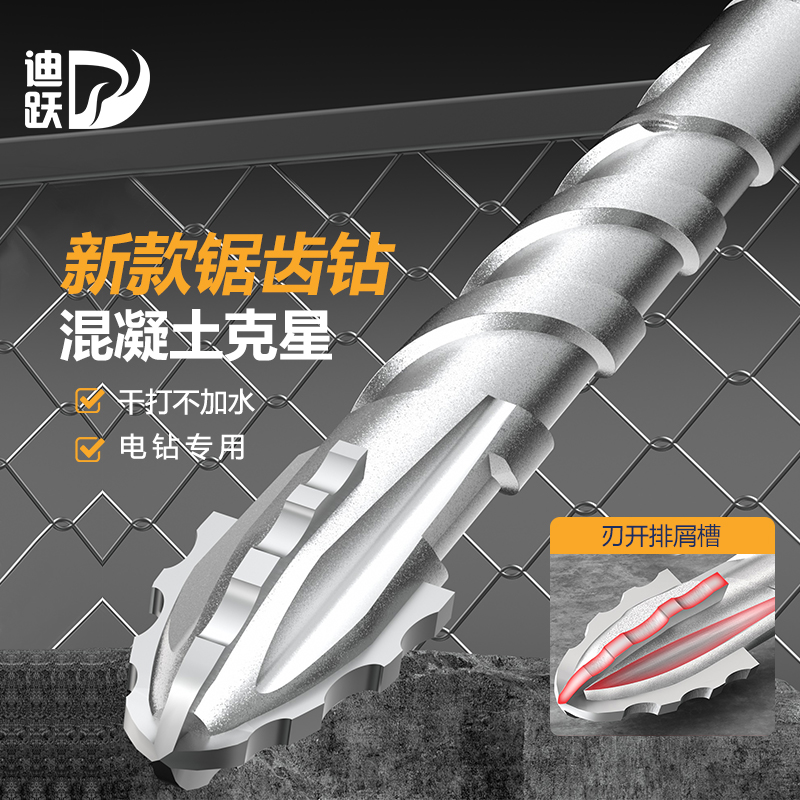 特快四刃锯齿偏心钻头瓷砖打孔混凝土超硬专用电钻高硬度干打霸王