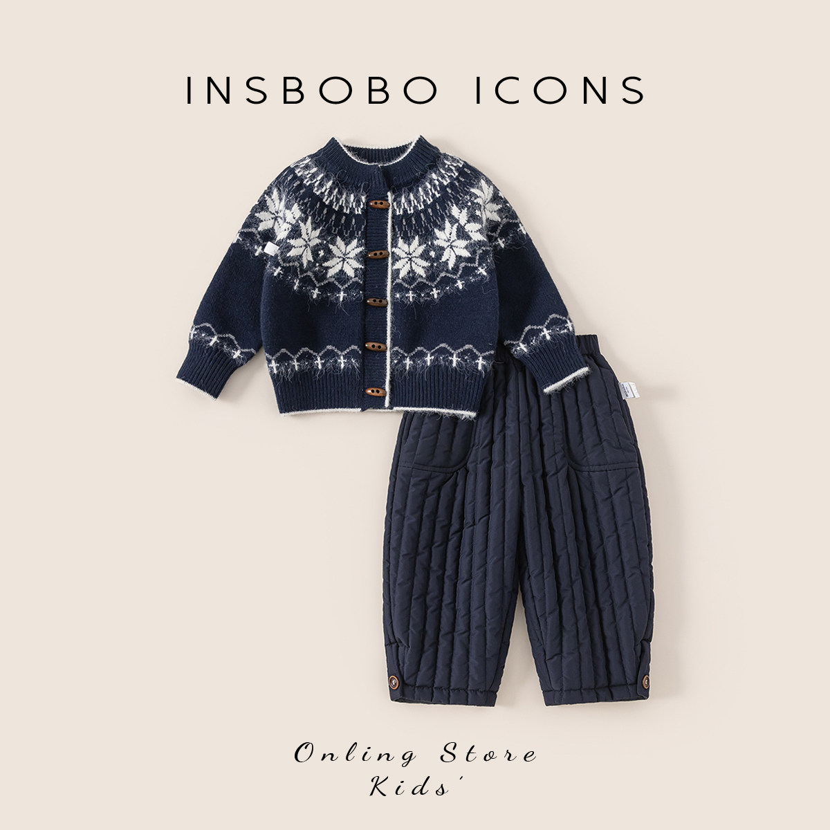 INSbobo男童套装2025冬季新款儿童毛衣洋气冬装宝宝帅气过年衣服