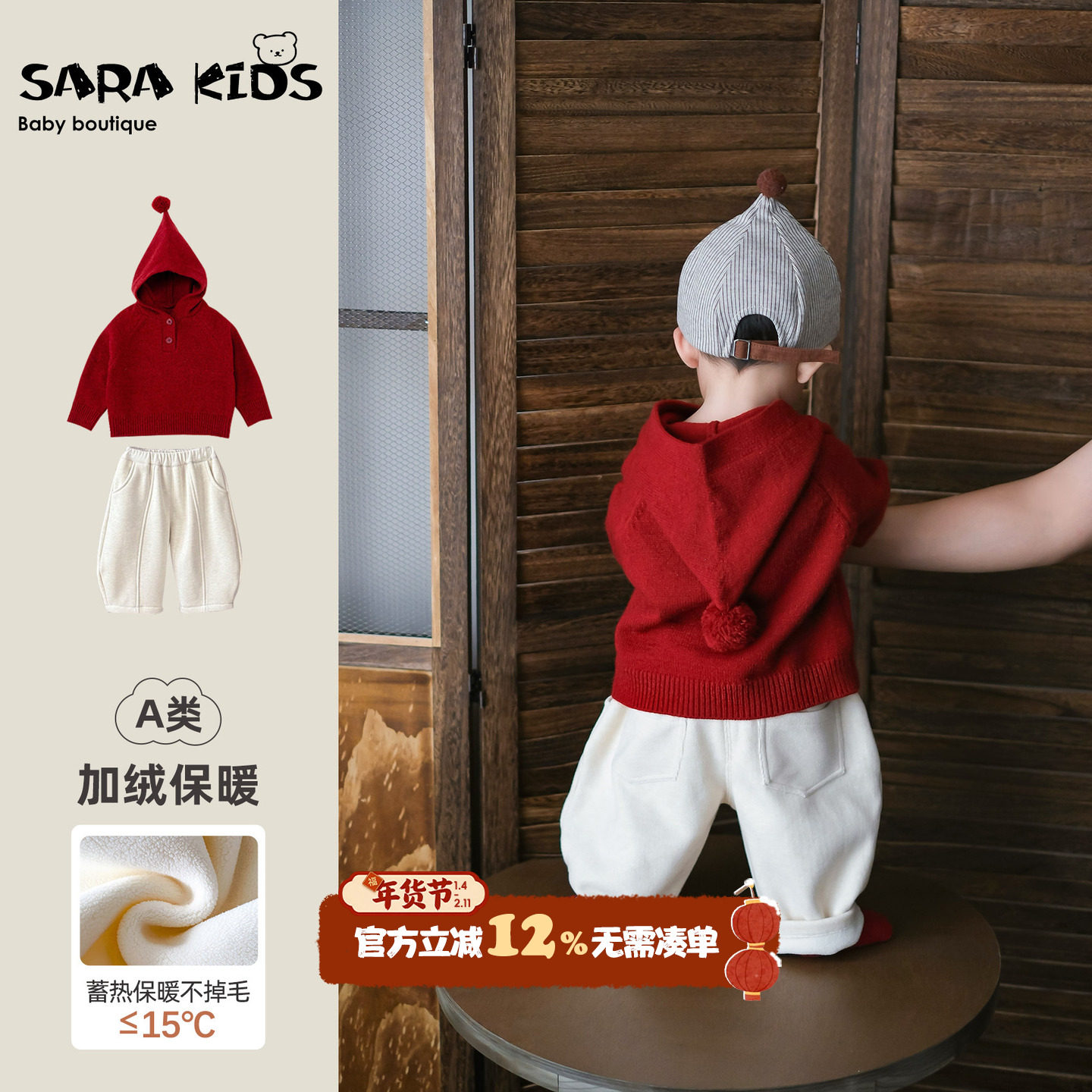 婴儿套装冬季儿童保暖毛衣加绒裤子冬装分体男宝宝衣服喜庆周岁服