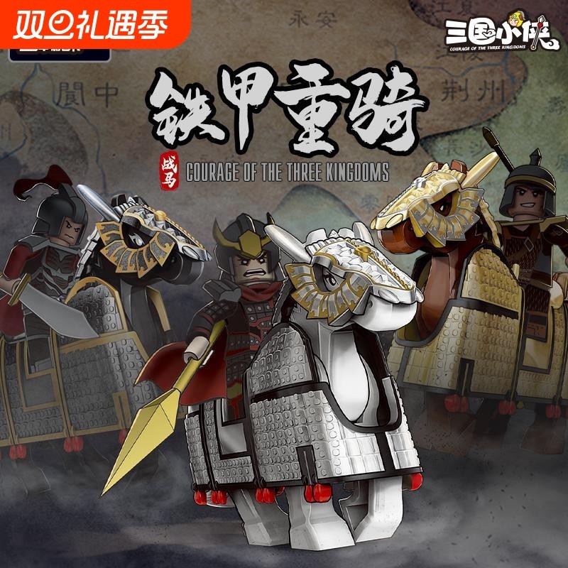 迪库积木儿童益智拼装三国铁甲重骑战马小人模型玩具男孩拼图人仔