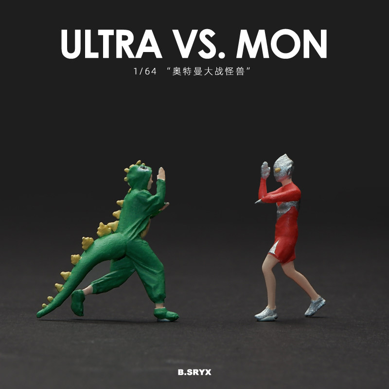 1:64 奥特曼打怪兽恐龙迷你微缩树脂小人模型微拍摄沙盘道具摆件