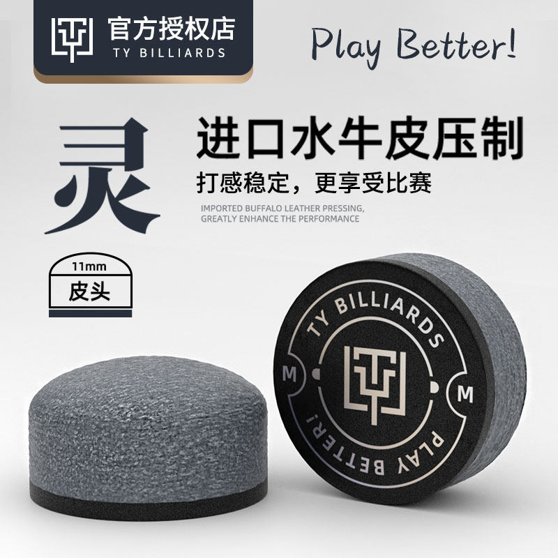 ty太一灵皮头台球小头杆单层职业斯诺克枪头中八黑八桌球杆头11mm
