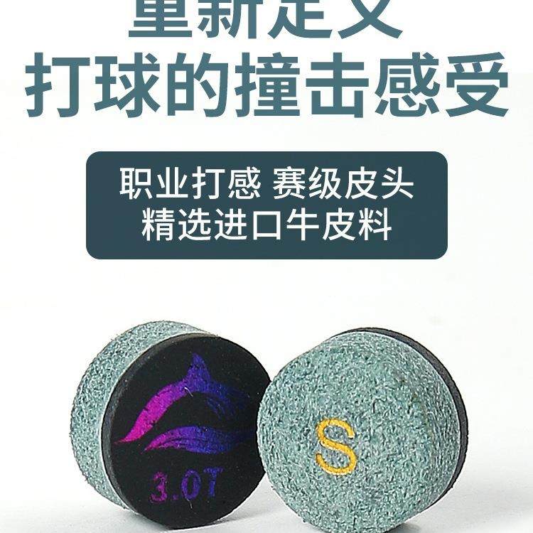 于德陆DLU皮皮头3炫.0T彩包大装3颗装鲨鱼皮头台球小头杆头台球用