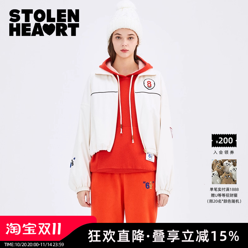 STOLEN HEART新款斗篷式设计感短款运动休闲百搭上衣白色棉服外套
