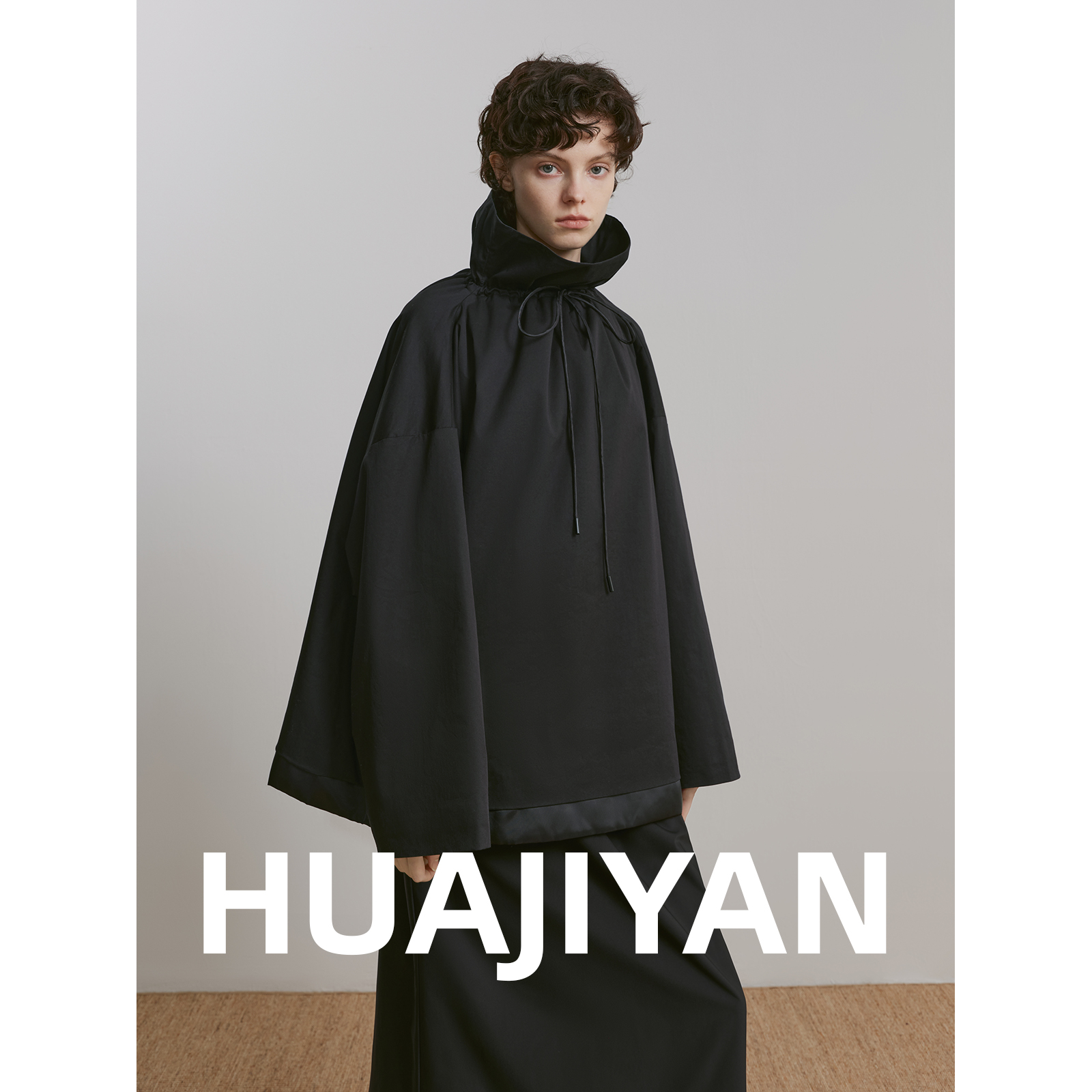 EAM STUDIO小众设计大翻领斗篷式棉服女秋冬新款黑色大码宽松棉衣