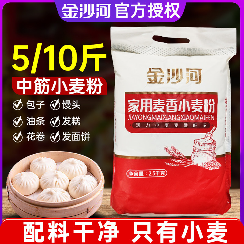 金沙河麦香小麦粉5斤中筋面粉家用白面馒头面包粉包子饺子炸鸡粉