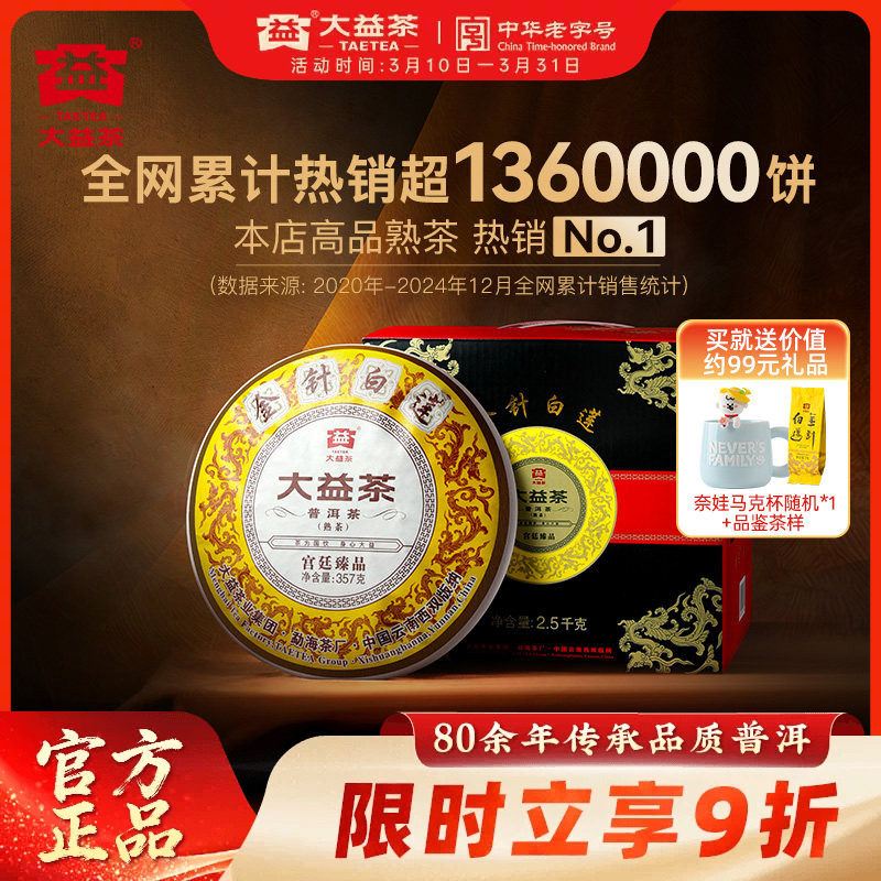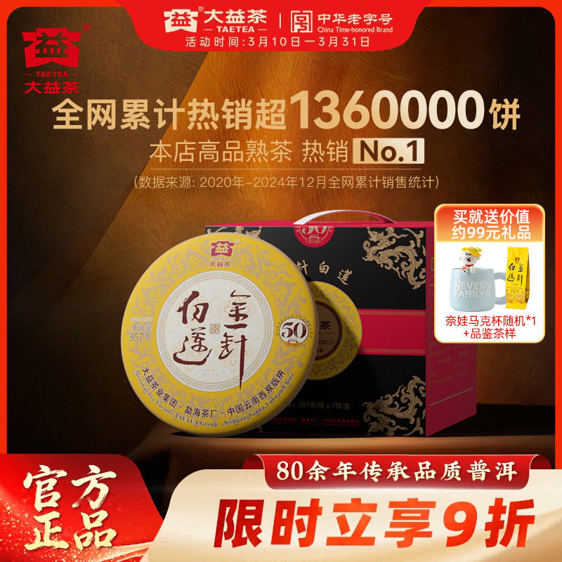 大益茶叶金针白莲普洱熟茶357g*7提装 勐海茶厂 50周年纪念版