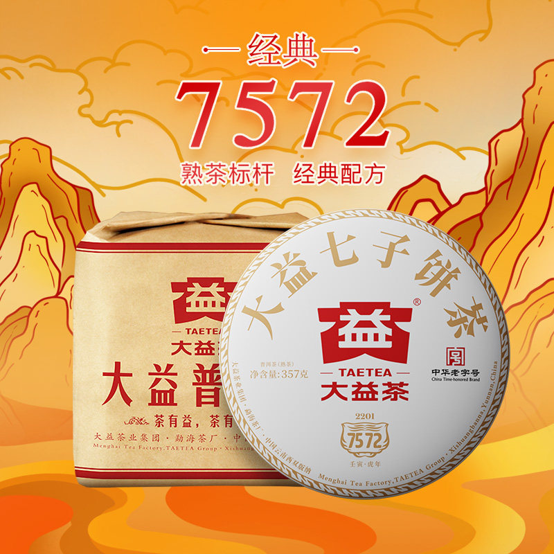 大益普洱茶经典标杆7572普洱熟茶357g*7饼提装2201批次官方旗舰店