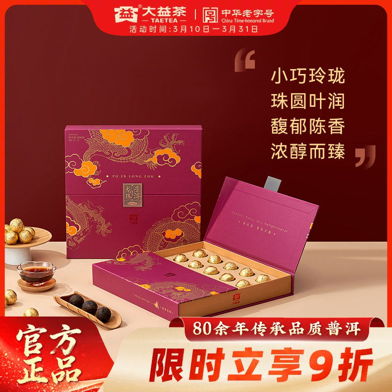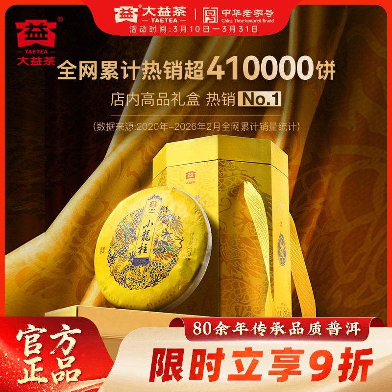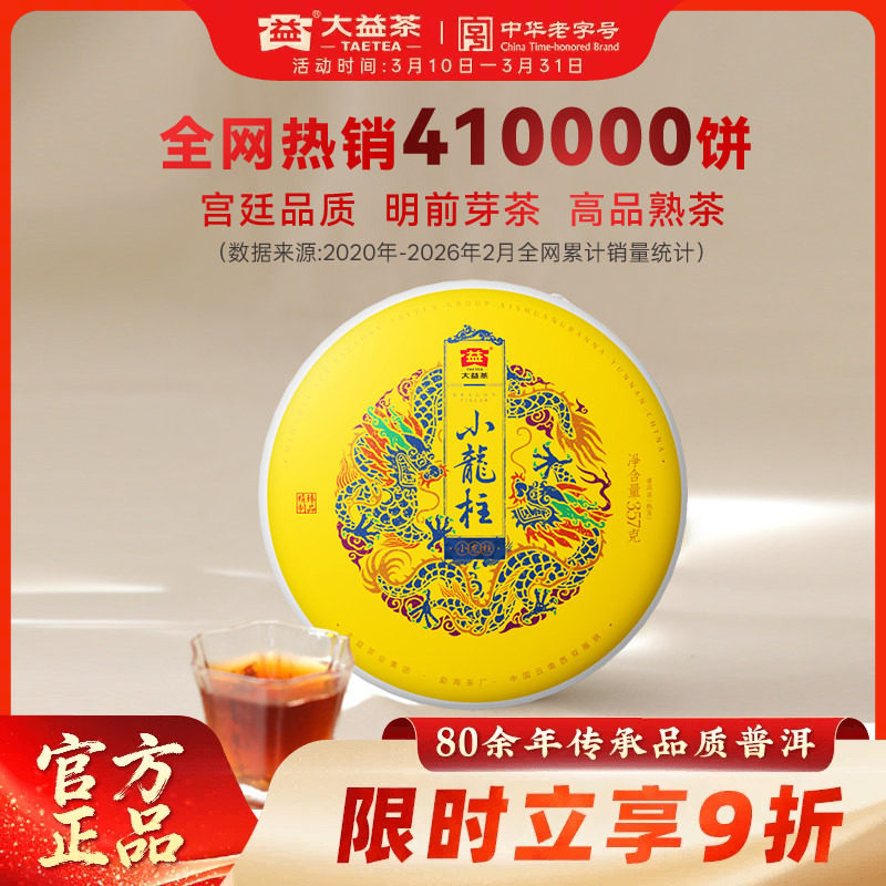 大益普洱茶小龙柱普洱熟茶357g春茶明前芽茶高端送礼官方旗舰店