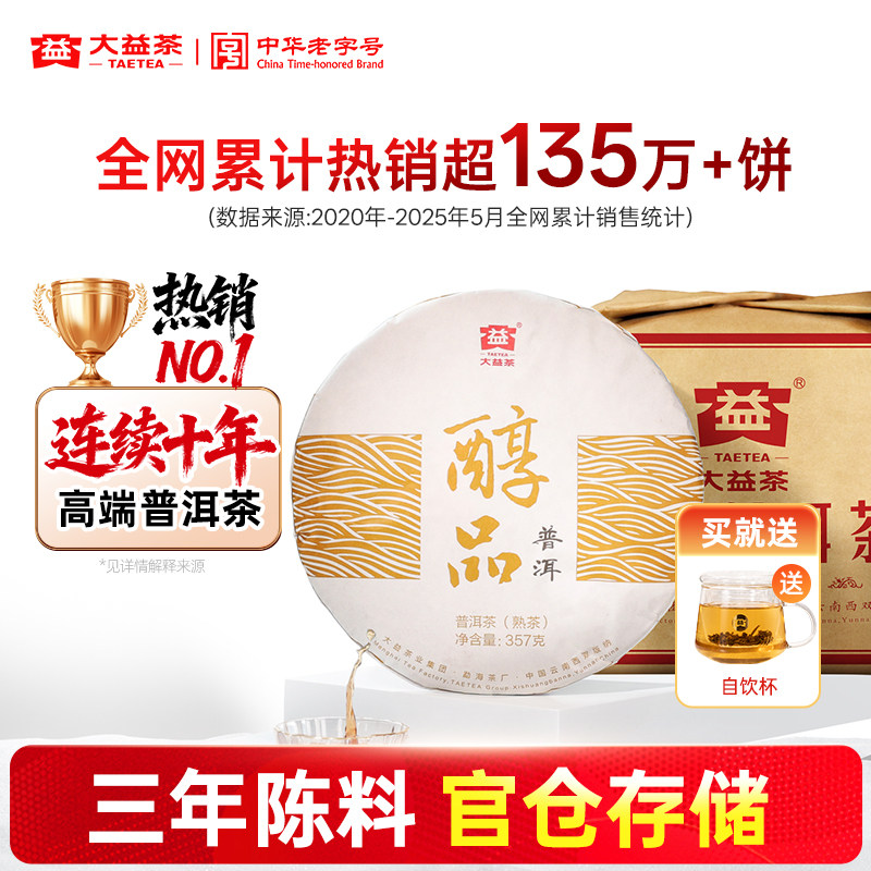 大益经典醇品357g/饼普洱熟茶叶耐泡3年陈云南勐海官方旗舰店正品