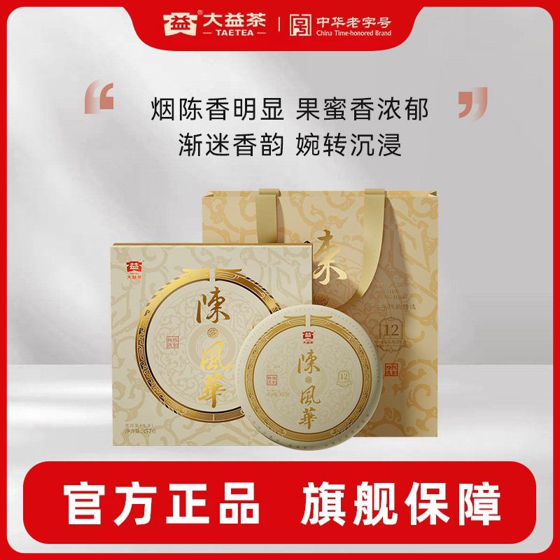 大益茶叶陈风华普洱生茶饼茶357g高端礼盒装12年陈化品质礼盒送礼