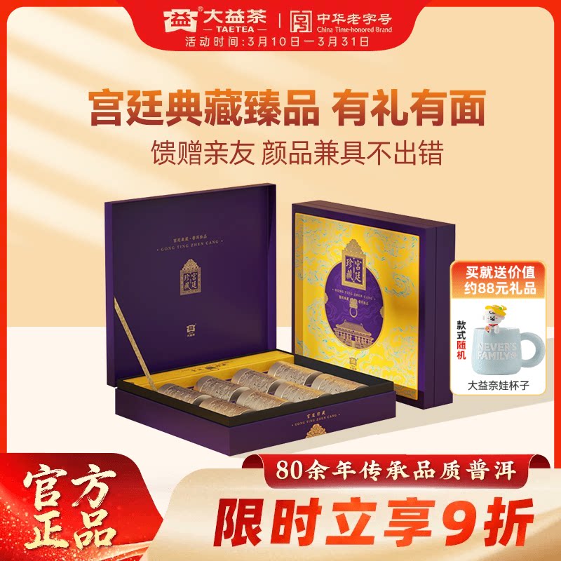 大益普洱茶宫廷珍藏熟茶50g*8罐装送领导送老丈人 高端茶叶礼盒装