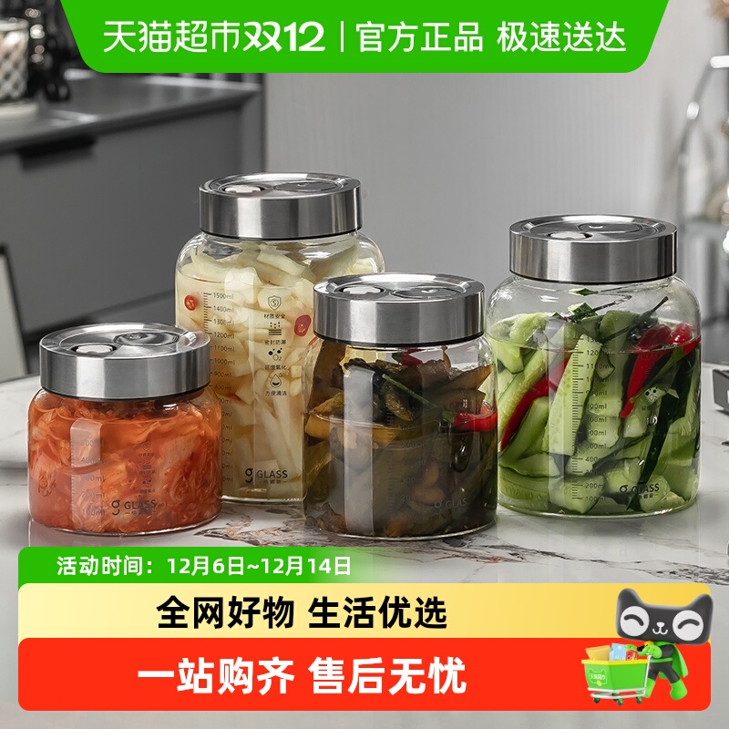 包邮无铅加厚竖条纹密封罐美容面膜粉瓶杂粮储物罐咸菜泡菜罐玻璃