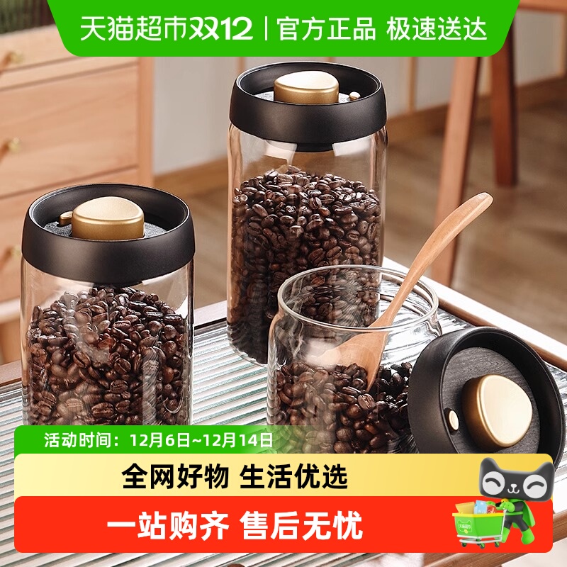 包邮格娜斯抽真空玻璃密封罐咖啡豆保存罐咖啡粉储存罐咖啡储物罐