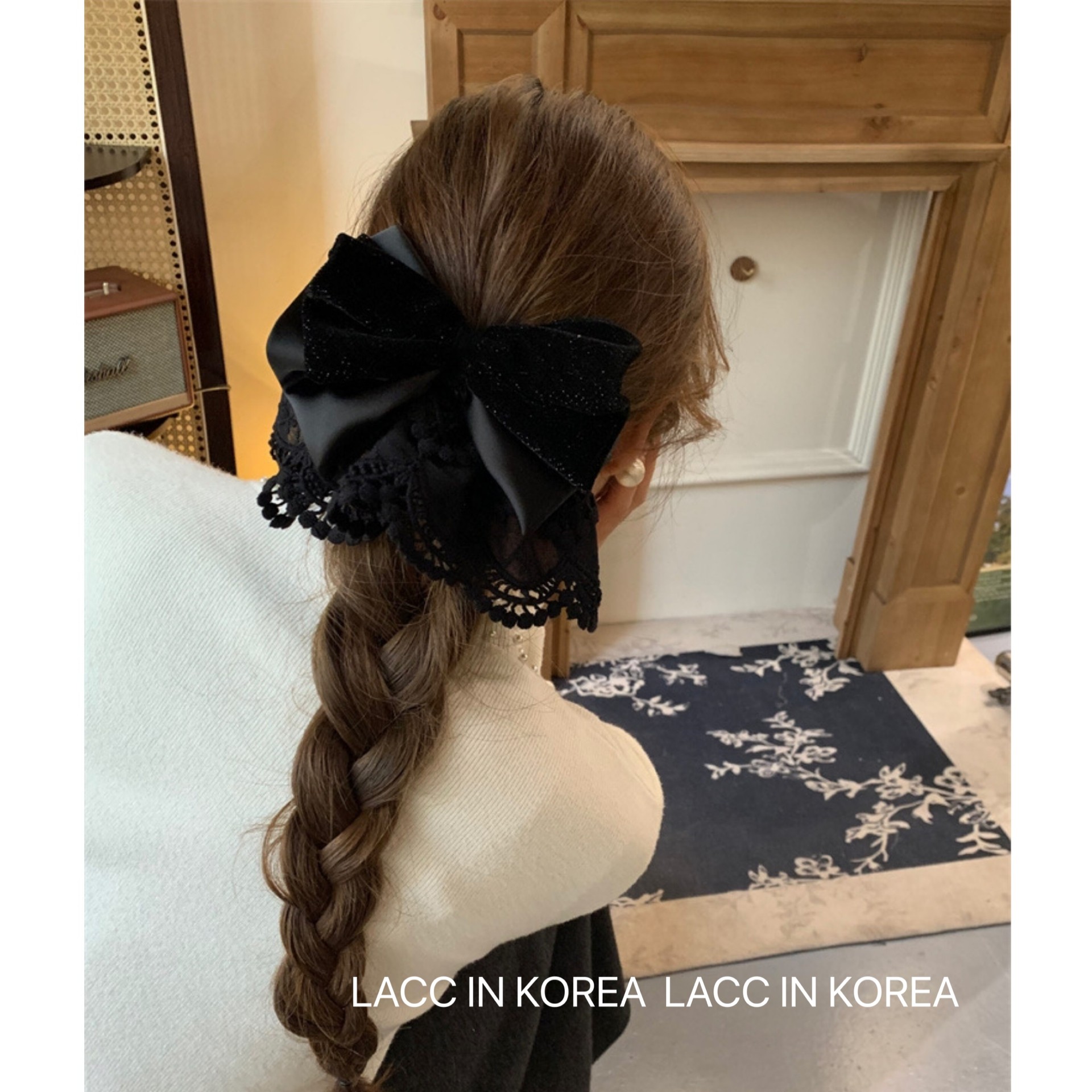 韩国复古高级感蕾丝蝴蝶结发夹2025新款后脑勺丝绒半扎顶夹发饰女