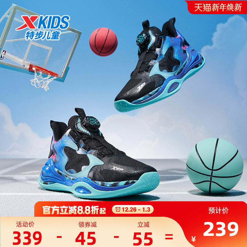 特步儿童夏季新款耐磨专业运动鞋旋钮扣运动鞋中大童小学生篮球鞋