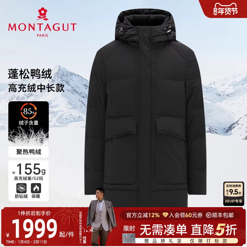[85%鸭绒/高充绒]梦特娇冬装男士羽绒服中长款连帽防钻绒外套厚J