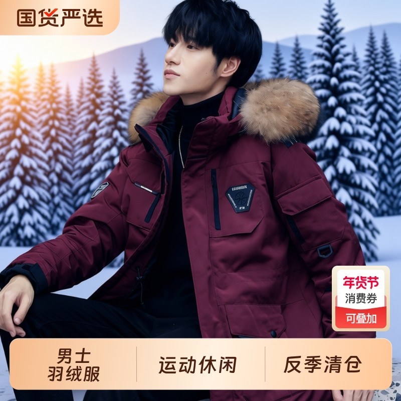 雪中飞加厚极寒男士羽绒服中长款大毛领工装派克服男冬季保暖外套