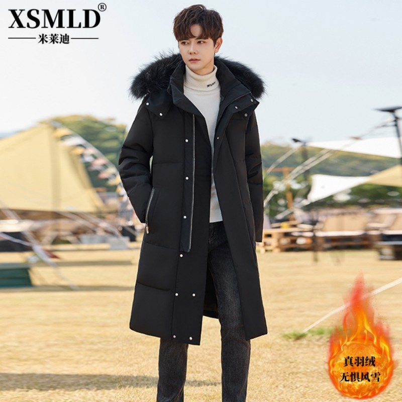 冬季男士羽绒服中长款韩版青年加厚保暖白鸭绒长款过膝外套帅气潮