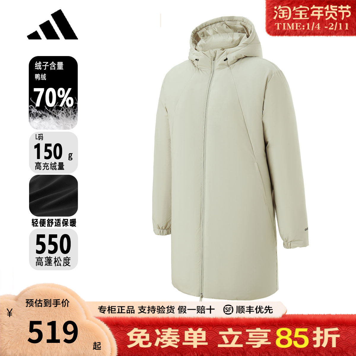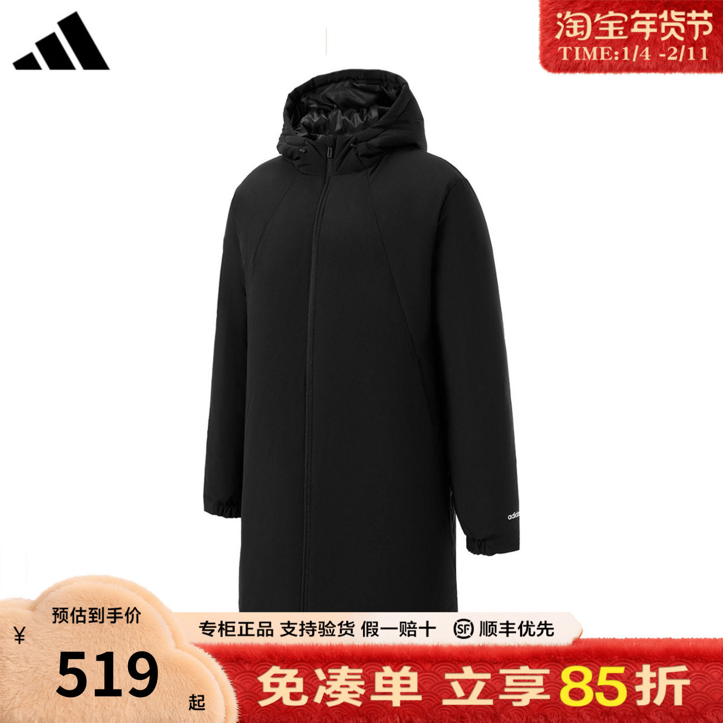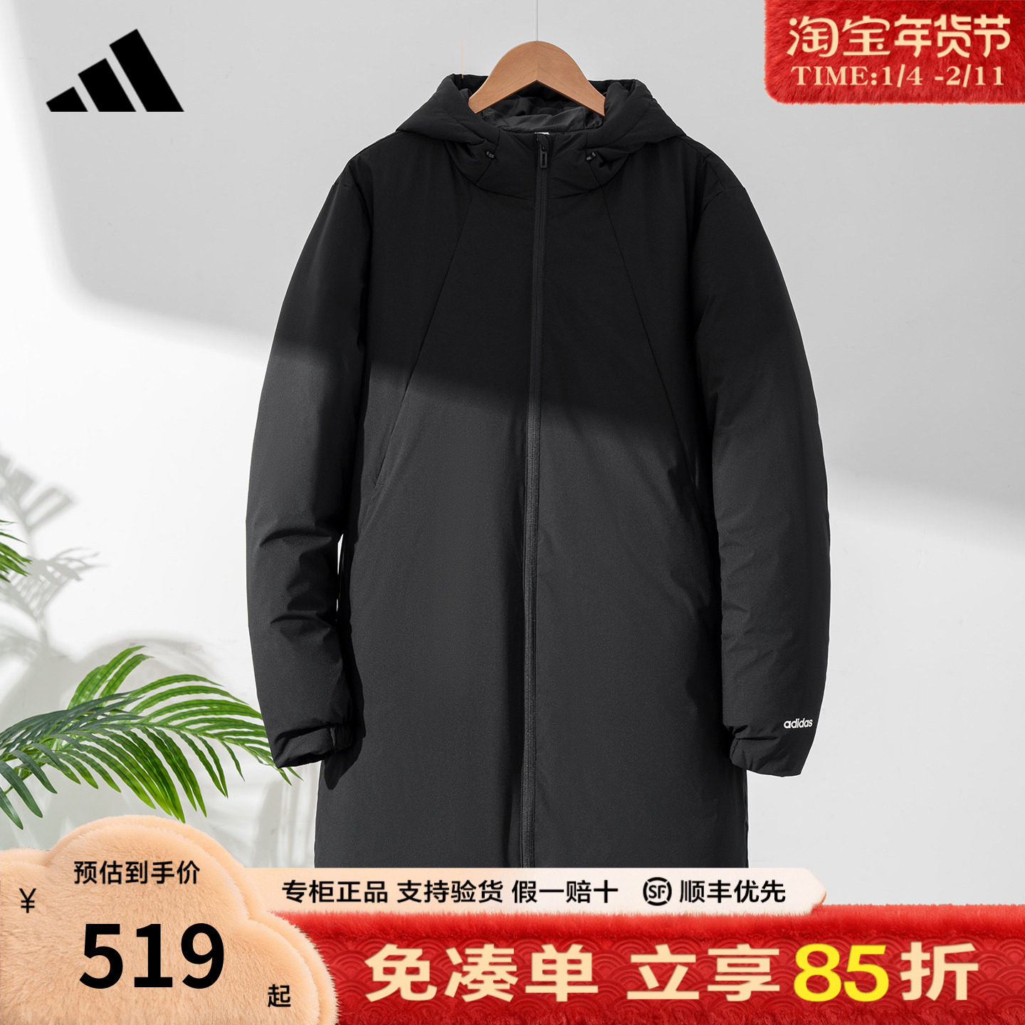 adidas阿迪达斯男士羽绒服中长款冬季新款连帽加厚鸭绒外套JL9617