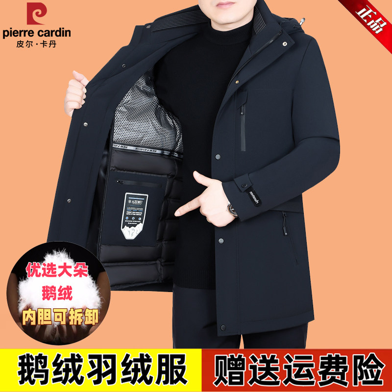 皮尔卡丹正品男士羽绒服中长款中年可拆卸内胆连帽加厚保暖外套男