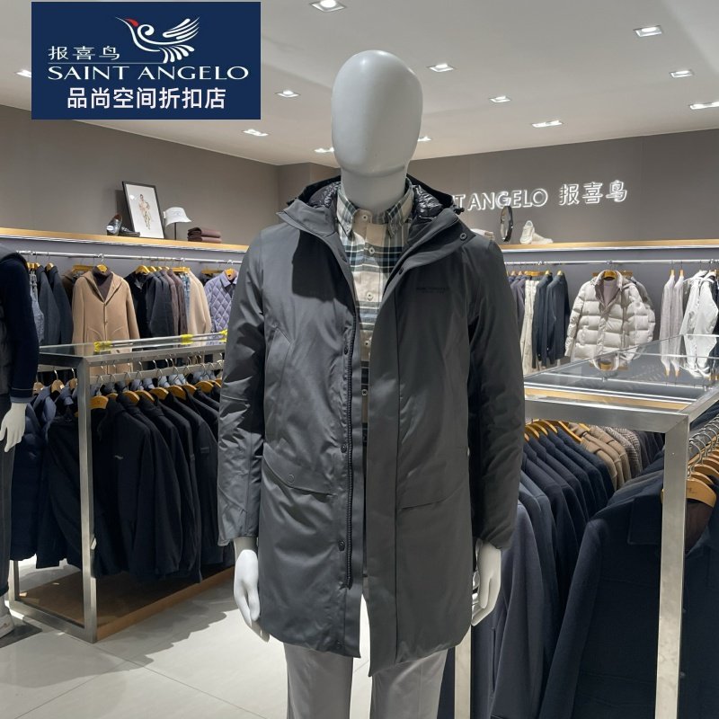 报喜鸟男士羽绒服中长款外套正品24秋冬款连帽保暖白鸭绒休闲上衣