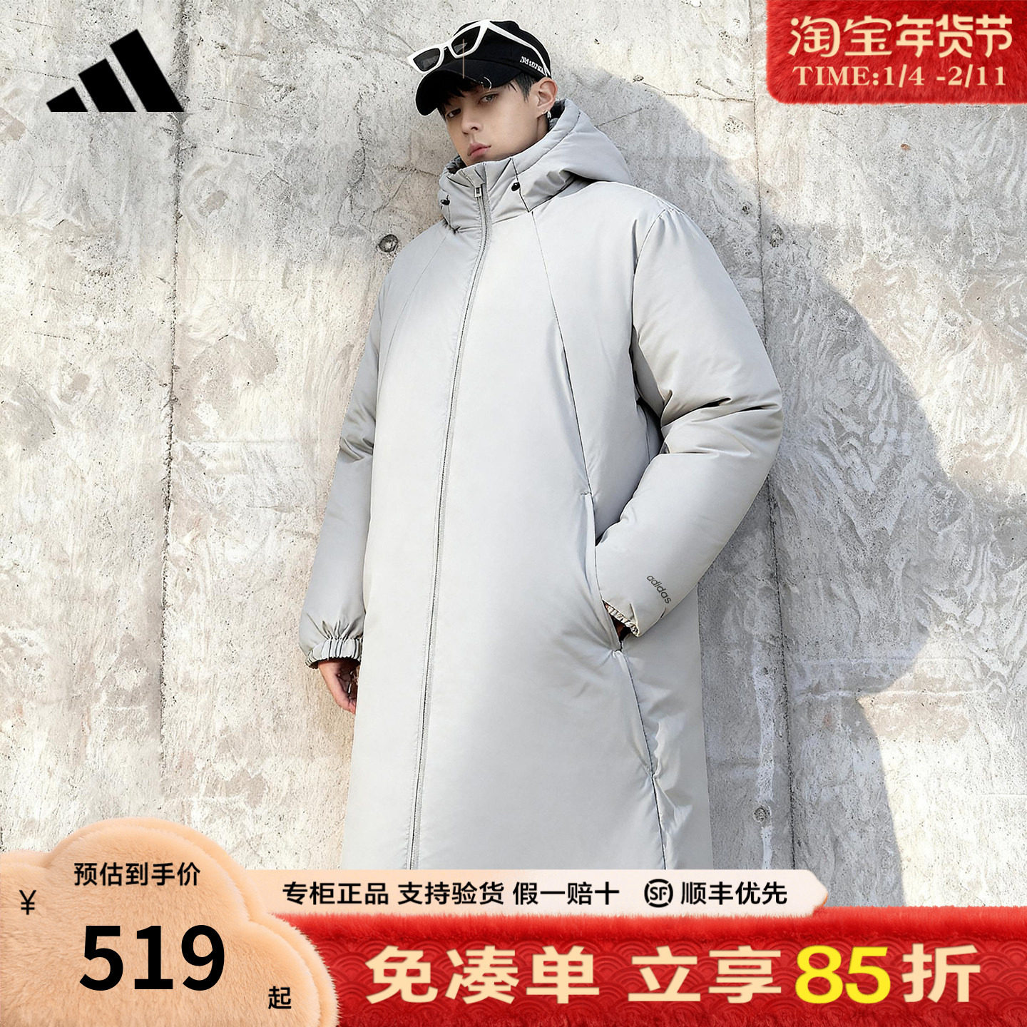 adidas阿迪达斯男士羽绒服中长款冬季新款连帽加厚鸭绒外套JL9618