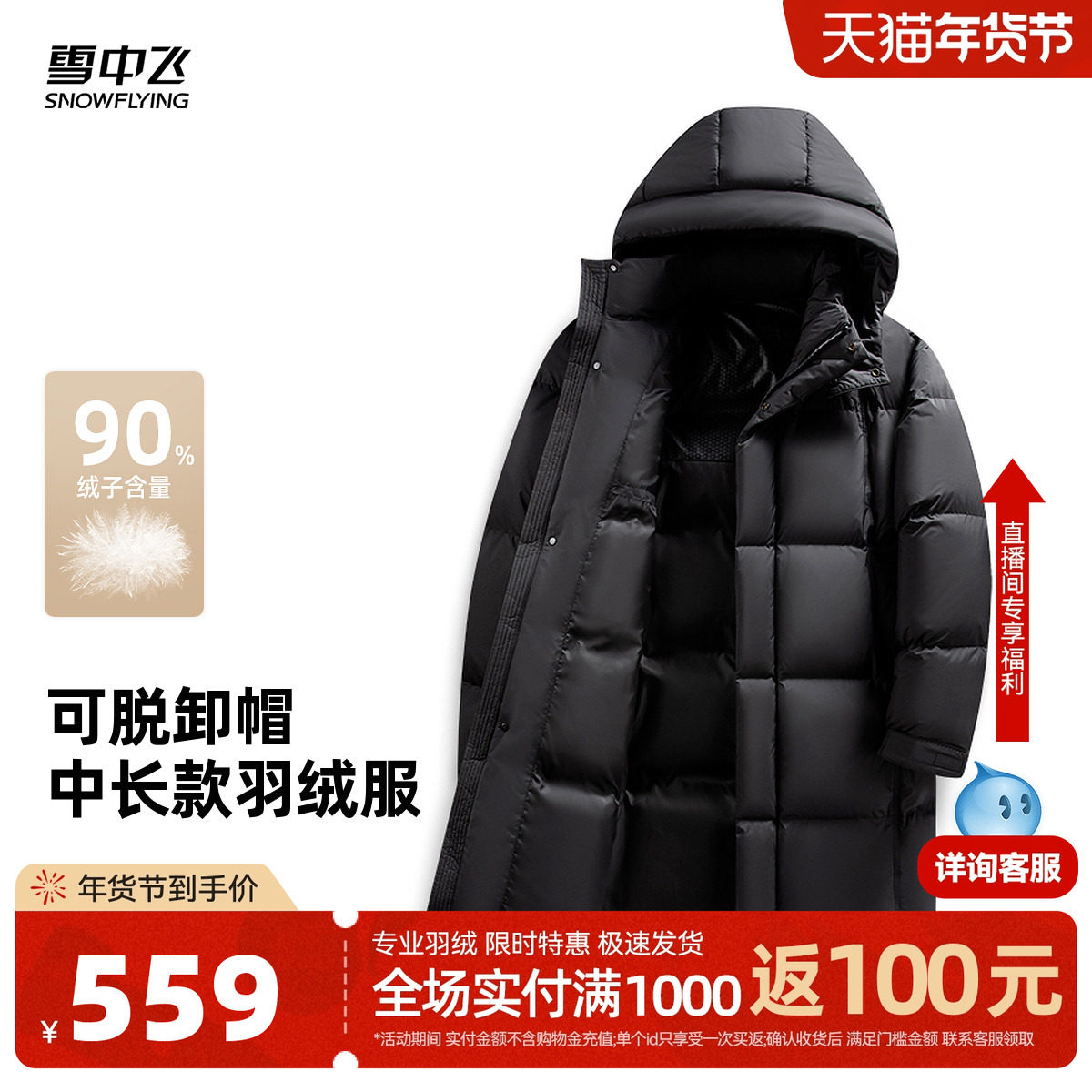 雪中飞中年男士羽绒服中长款2025冬季新款连帽加厚保暖鹅绒服外套
