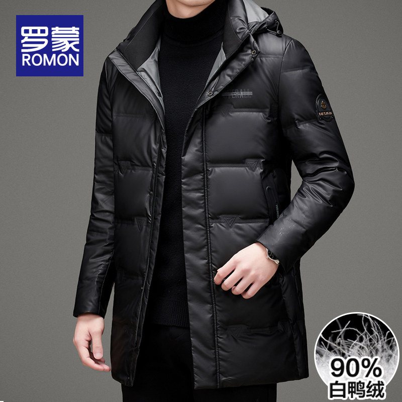 【90白鹅绒】罗蒙男士羽绒服中长款秋冬季2025新款加厚保暖外套男