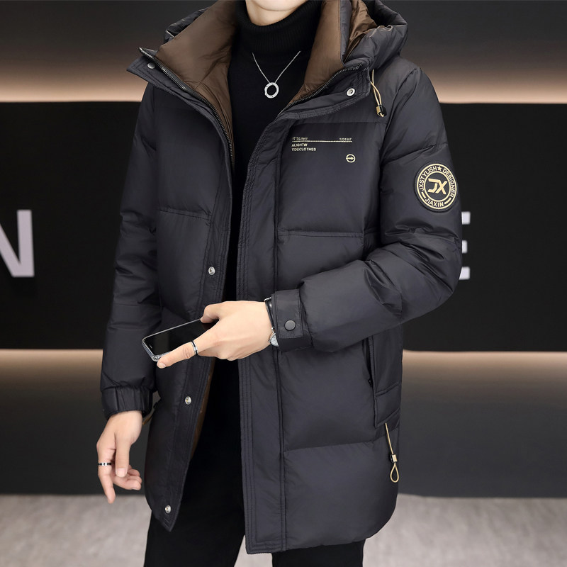 正品连帽男士羽绒服中长款2025冬季新款加厚保暖外套高级感青少年