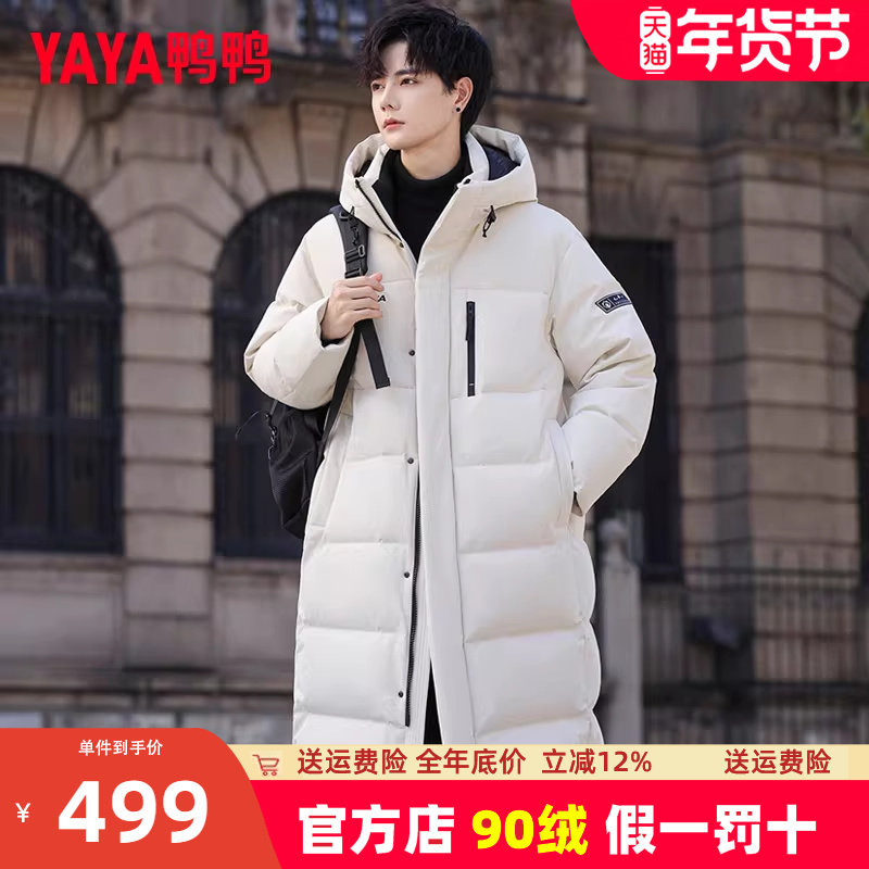 鸭鸭冬季男士羽绒服中长款过膝2025新款连帽保暖青少年宽松外套潮