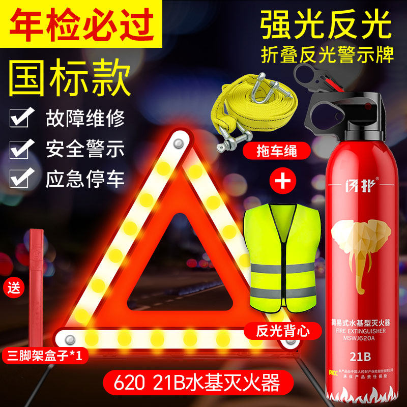 车载灭火器三件套年审车验车汽车用年检安全车辆家用新国标三脚架