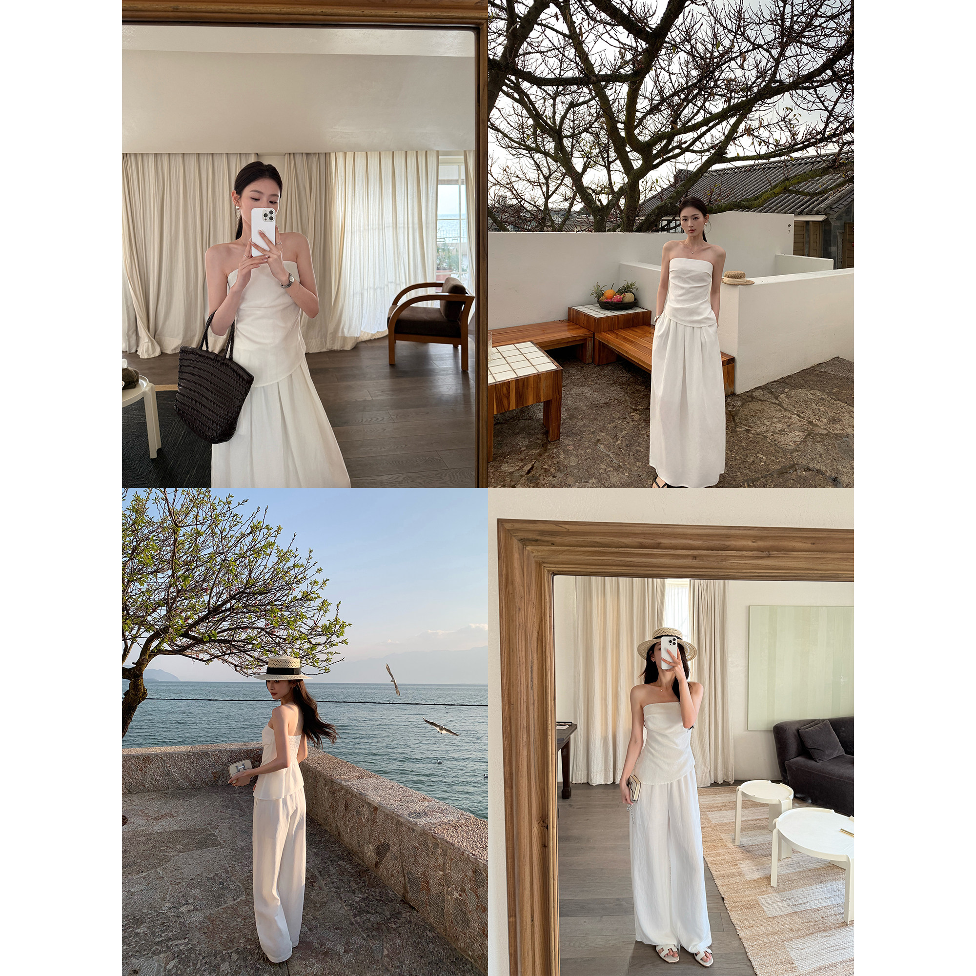 pusumede 老钱风套装|气质抹胸上衣/花苞半身裙/休闲阔腿裤两件套