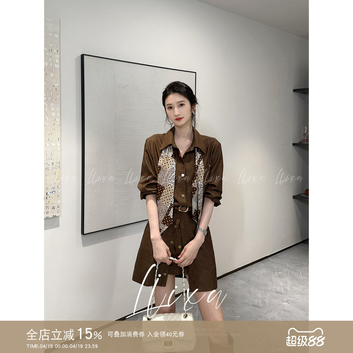 Liixu 夏季轻熟风穿搭女长衬衫搭配假两件a字裙收腰显瘦通勤套装