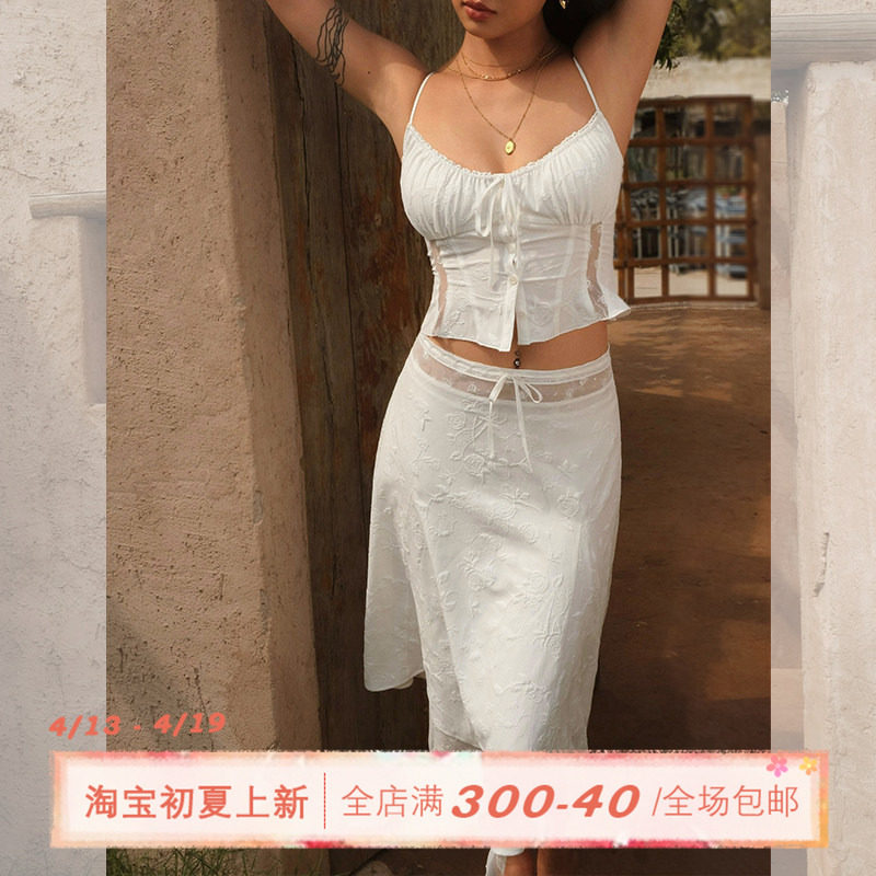 ITSNIKAR 法式玫瑰刺绣蕾丝朱莉套装女设计感吊带背心半裙两件套