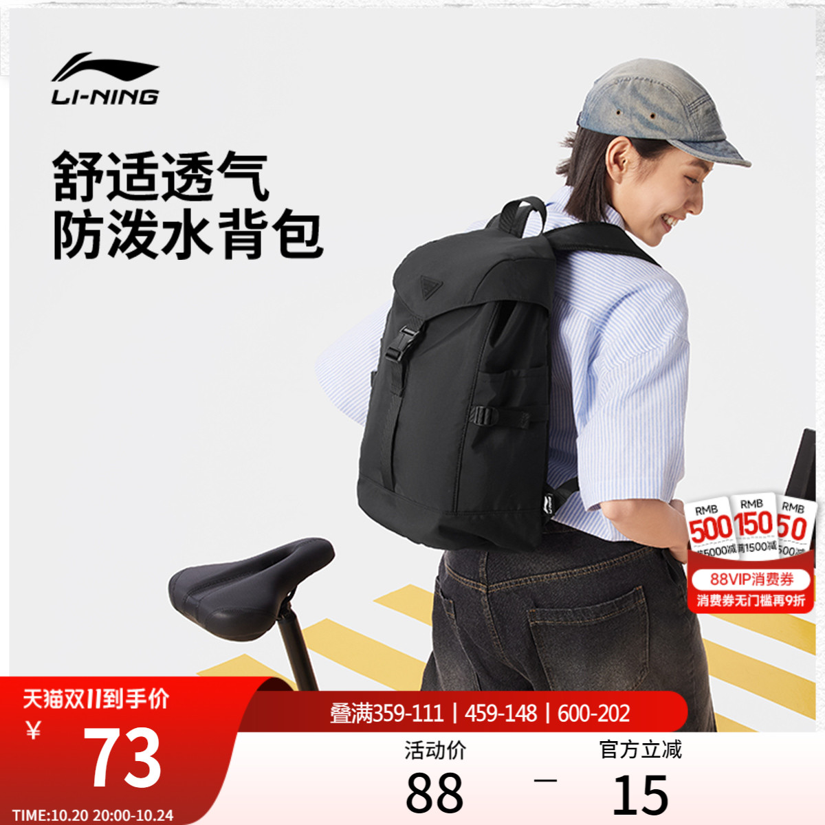 李宁双肩包男女官方正品户外休闲通勤商务背包学生书包反光运动包
