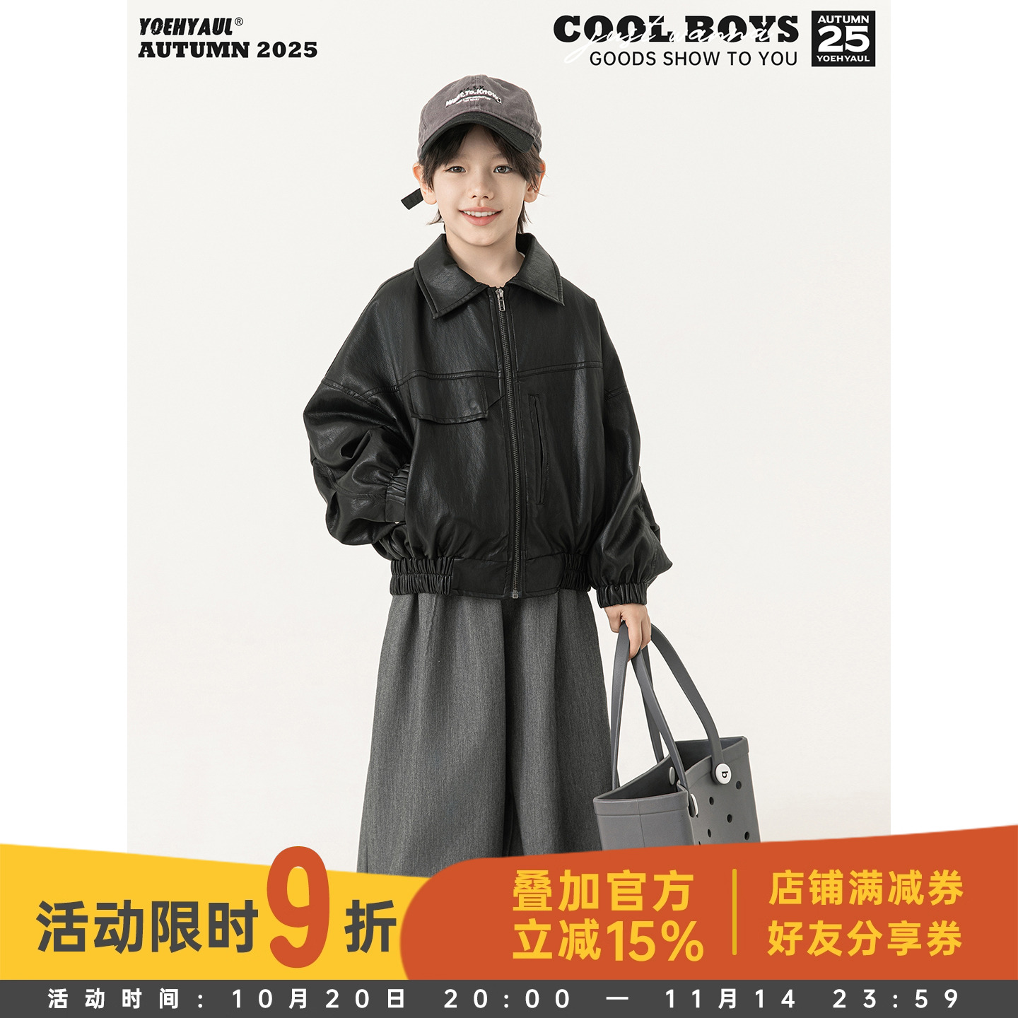 多多家男童皮衣外套2025春秋新款儿童中大童宽松休闲夹克上衣秋装