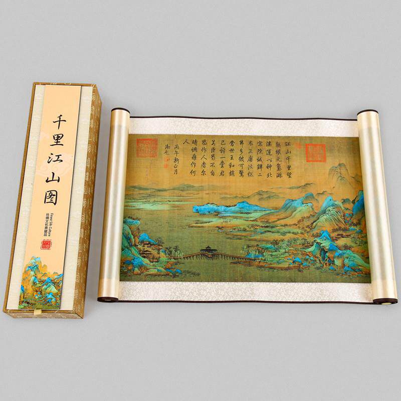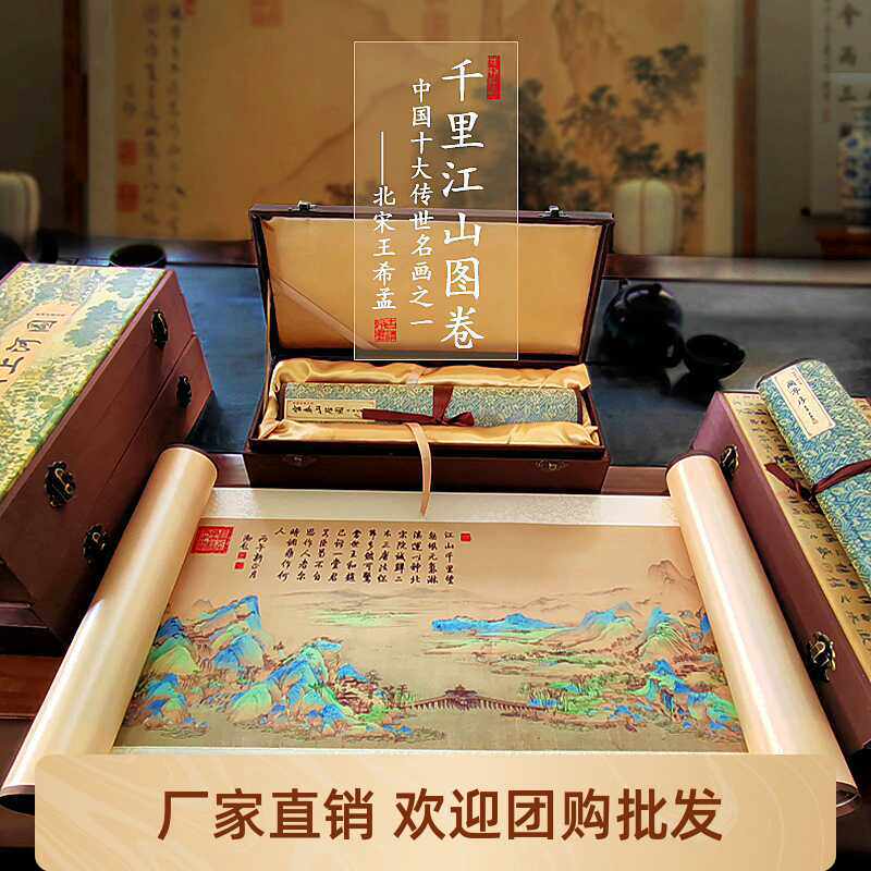 出国送外国人礼品丝绸卷轴画 画千里江山图中国风特色商务礼品送