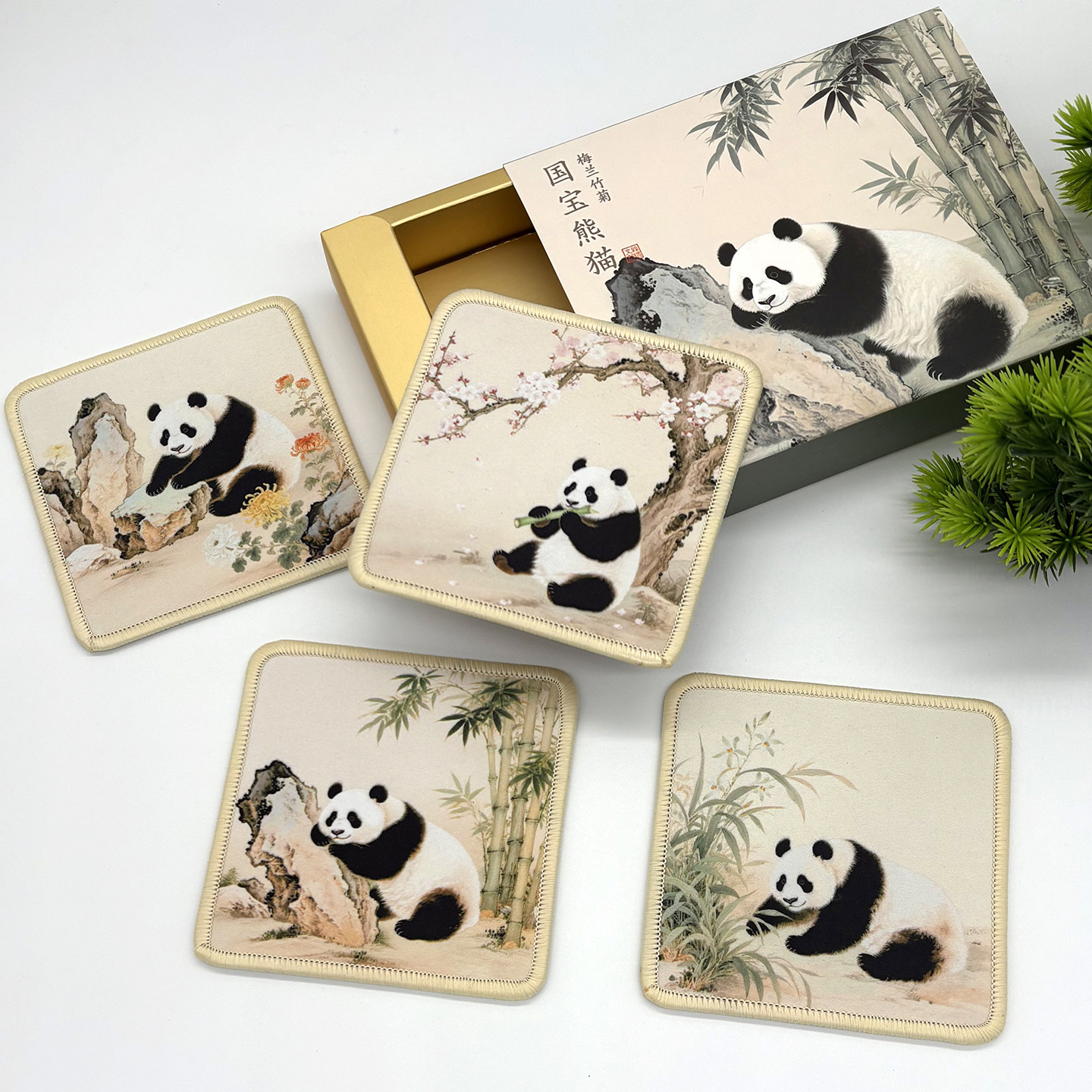 熊猫周边文创丝绸杯垫送外国人的中国风特色北京伴手礼品新年礼物