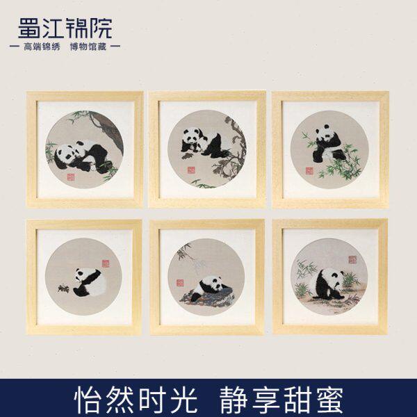 怡然熊猫框画成都蜀锦手工艺品伴手礼家居摆件中国风礼品送外国人