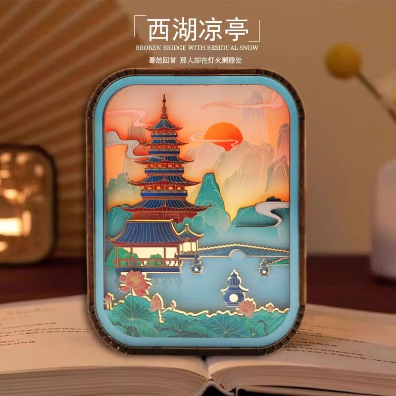 西湖木雕灯3D立体装饰摆饰中国风小夜灯文创生日礼物创意送外国人