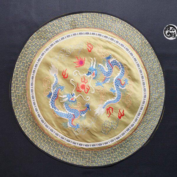真丝手工刺绣京绣老绣片传统中国风送外国人礼品二龙戏珠特色圆垫