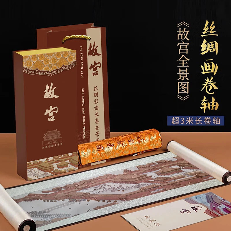 故宫文创长城山水丝绸卷轴画送外国人的中国风元素礼物北京纪念品