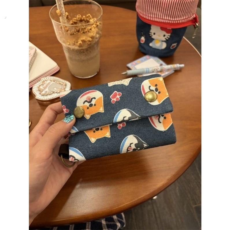 新款短款折叠小钱包女式小众设计可爱印花猫咪迷你钱夹零钱卡包薄