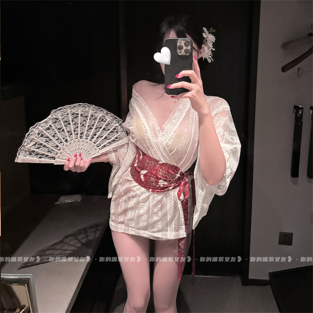 weisgirl纯欲风日系复古和服半透性感浴衣套装猫女郎cos服睡裙女
