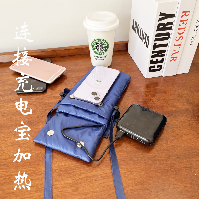 冬季防寒手机保暖防冻可挂脖可斜挎包手机套充电宝保暖棉袋时尚包