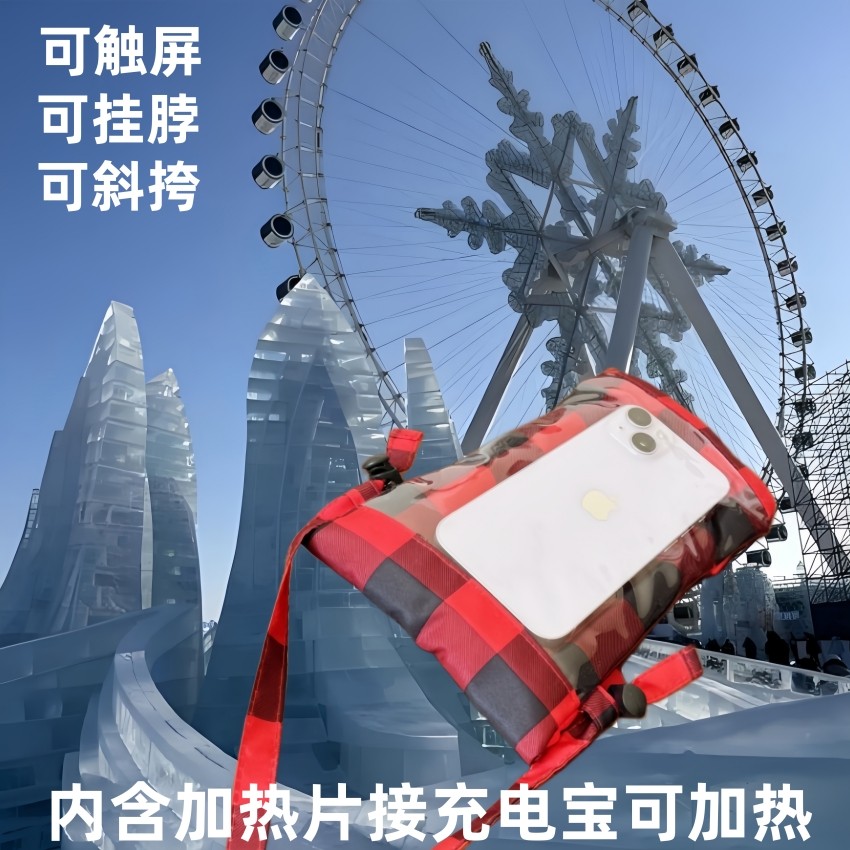 东北防寒手机加热保暖防冻套外卖冬季天去哈尔滨装备小挎包壳滑雪