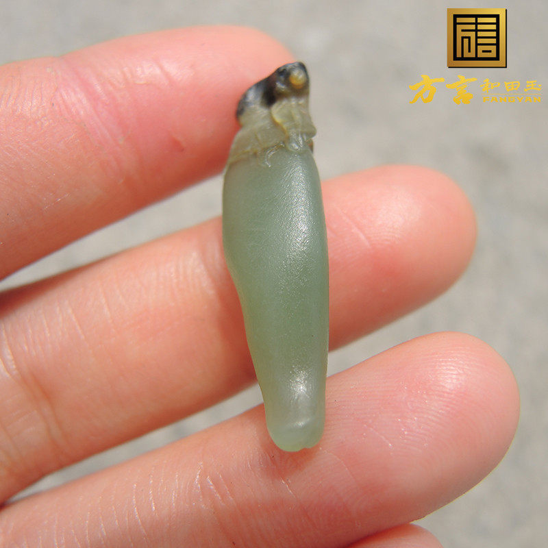 美美哒方言和田玉俄罗斯老坑鸭蛋青带围岩小辣椒手机坠吊坠挂件O
